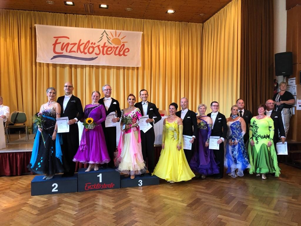 Bei den Sommertanzwochen in Enzklösterle im Schwarzwald erreichten Stefan und Claudia Bachmaier in der Sen III A am Samstag, 3.8.2019 den dritten Platz, punktgleich mit dem zweiten Platz. Am Ende musste mit dem Skating Verfahren die Plätze ermittelt werden.